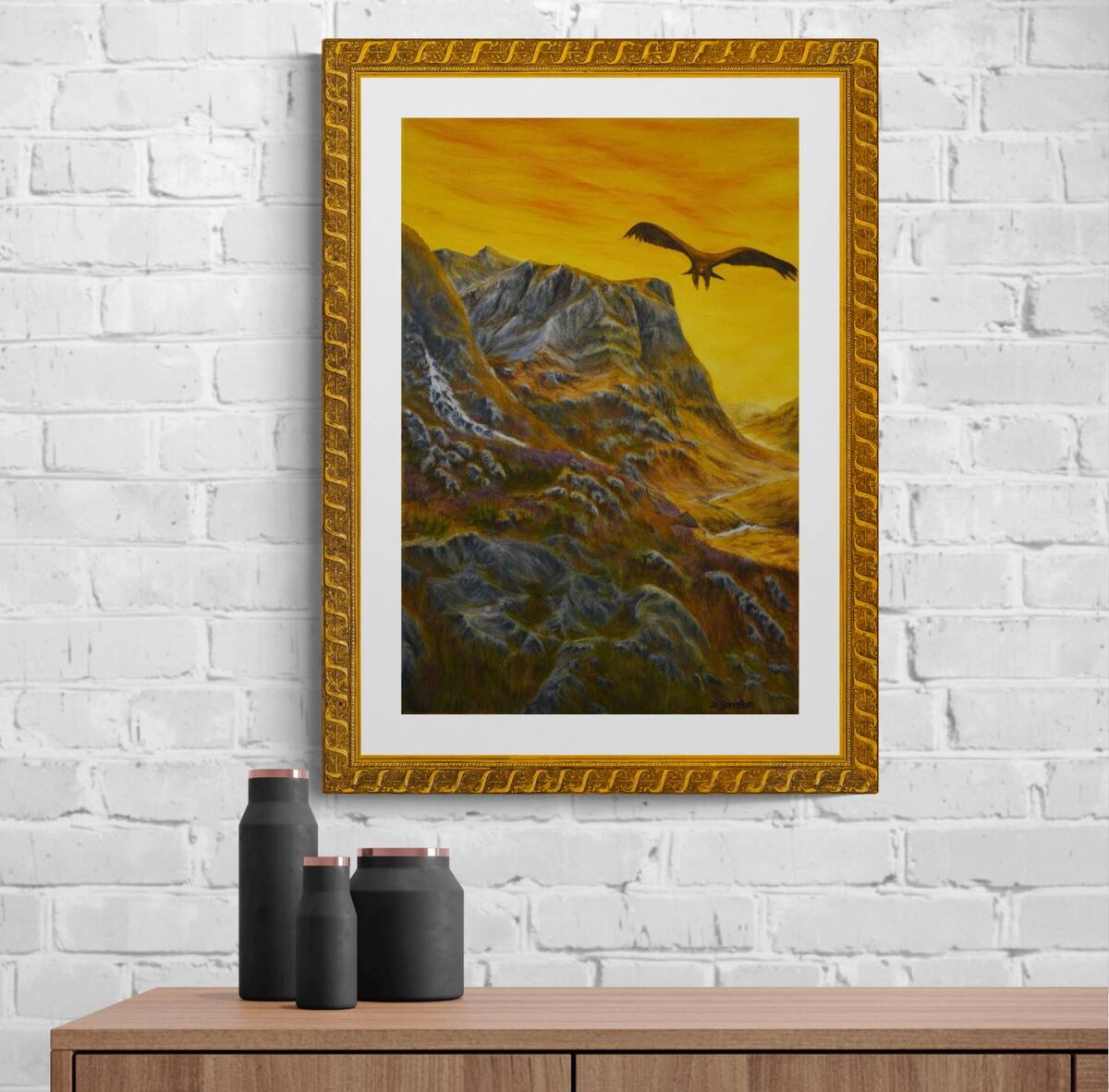 Hunting grouse "Highland Majesty" - Golden Eagle Hunting Grouse in the Scottish Highlands. Elevate your space with "Highland Majesty," a painting that captures the thrill of the hunt and the soul of the Scottish wilderness. This artwork is a testament to nature's magnificence, skillfully rendered on canvas to celebrate the wild spirit of Scotland. Prints Available **Bring the Highlands Home**